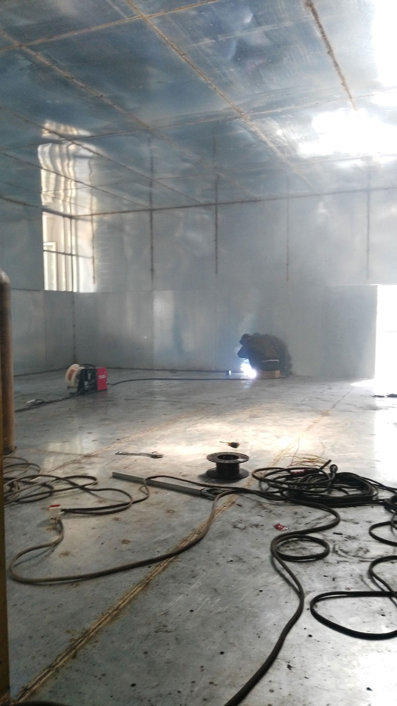1、殼體:有六面板體、支撐龍骨及殼體與地面進行絕緣處理,其中頂、墻板采用厚度為2mm的冷軋鋼板,地板采用厚度為3mm的冷軋鋼板;焊接工藝為CO,保護焊。